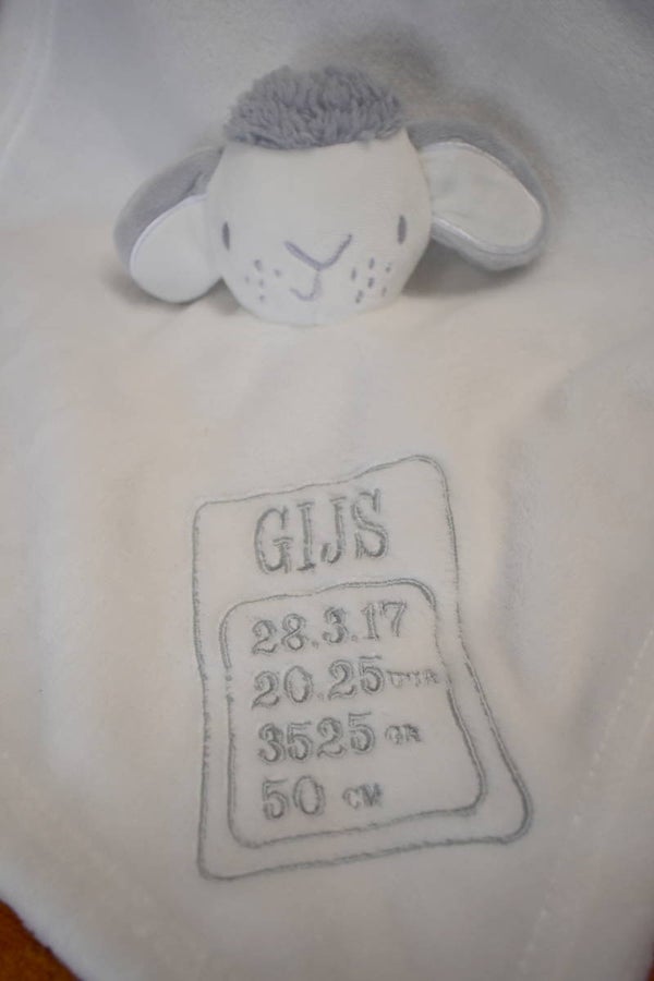 knuffeldoek Super zacht rose , lichtblauw, wit of zalm met hartjes met naam of datum € 14,95